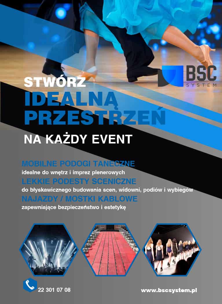 - Mobilność i szybki montaż – sceny oraz mobilne podłogi taneczne dostarczane są jako zestawy podestów scenicznych z kompletem akcesoriów, co umożliwia sprawne złożenie i demontaż bezpośrednio na miejscu wydarzenia.