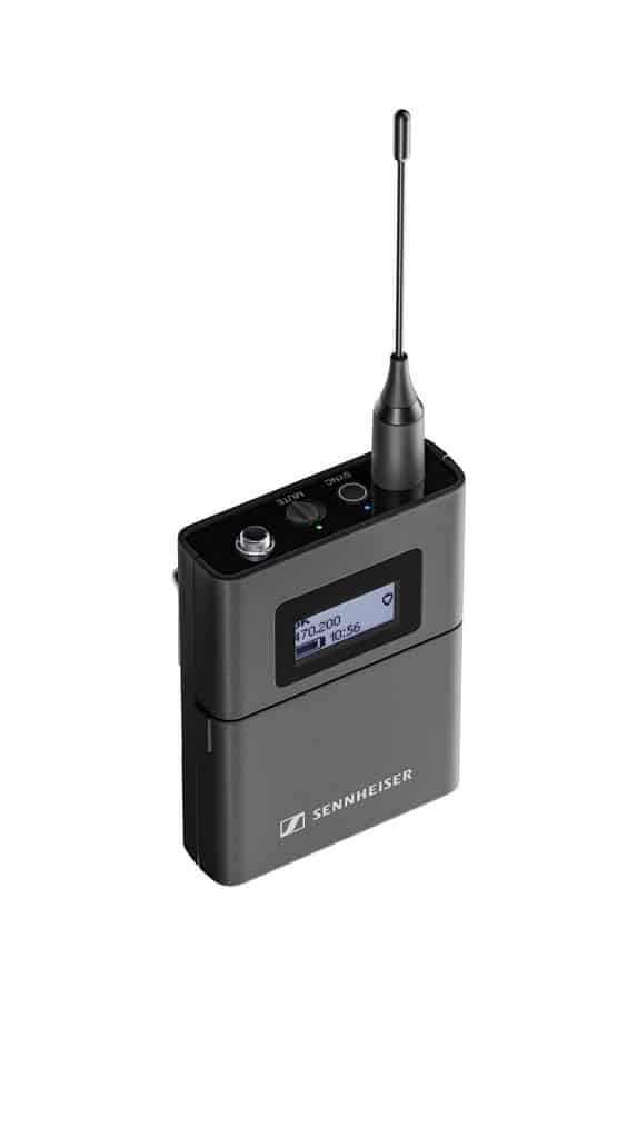 - EW-DX SK: nadajnik bodypack ze złączem jack 3,5 mm, w zestawie z uchwytem na pasek oraz dwiema bateriami AA (bez akumulatora BA 70 oraz przewodu mikrofonowego lub instrumentalnego!)