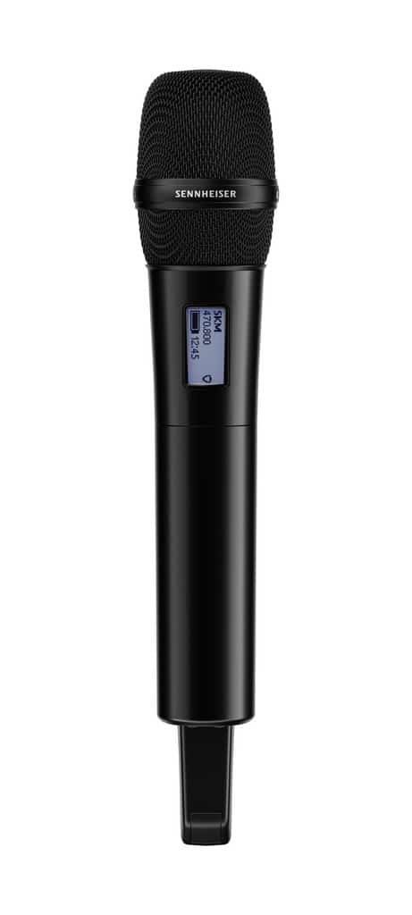 - EW-DX SKM-S: nadajnik ręczny z programowalnym przełącznikiem wyciszenia, w zestawie z uchwytem mikrofonowym i dwiema bateriami AA (bez kapsuły mikrofonowej oraz akumulatora BA 70!)