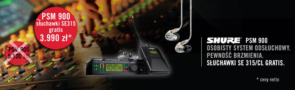 Kupując system odsłuchowy Shure PSM 900 w promocyjnej cenie 3.990 zł słuchawki SE315 otrzymasz gratis!
