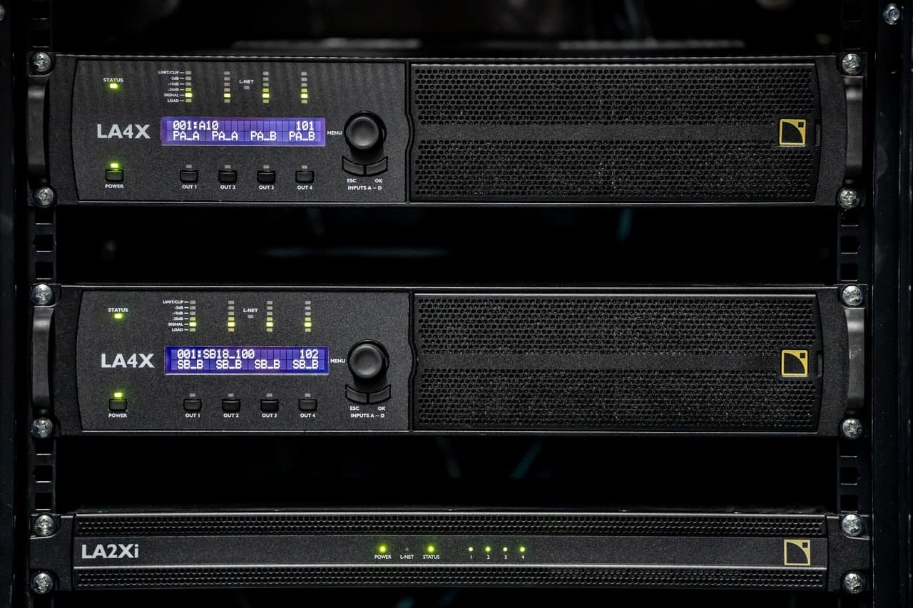 Zastosowany tu system nagłośnieniowy L-Acoustics to nowoczesna, a jednocześnie prosta instalacja, złożona z dwóch gron frontowych, czterech subwooferów oraz czterech koaksjalnych zestawów tworzących frontfill. Do gron głównych zastosowano najnowsze zestawy pełnopasmowe serii ARCS – A10i – w liczbie ośmiu. Wykorzystano po trzy moduły o wąskiej propagacji (Focus) i po jednym o szerokiej propagacji (Wide) na stronę. Subbas tworzą moduły SB18i, zaś frontfill to sprawdzone zestawy miniaturowe 5XT. Całość systemu zasilają dwa wzmacniacze procesorowe LA4X oraz trzeci, najnowszy model instalacyjny LA2Xi. Ponadto w zamówieniu znalazło się wyposażenie mikrofonowe różnych marek. Całość została dostarczona przez Audio Plus w formule „zaprojektuj i zbuduj”.