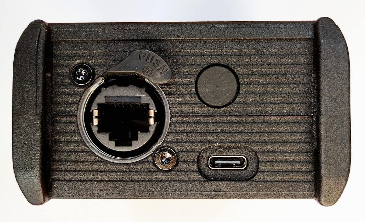 Gniazda zlokalizowano na ścianach obudowy – na górze etherCON i USB-C, na dole XLR (5-pinowe). I rzecz pozornie drugoplanowa, ale w przypadku profesjonalnego narzędzia tego typu naprawdę ważna – wszystkie gniazda są bardzo solidne, a kable siedzą w nich pewnie, nic się nie kolebie na boki.