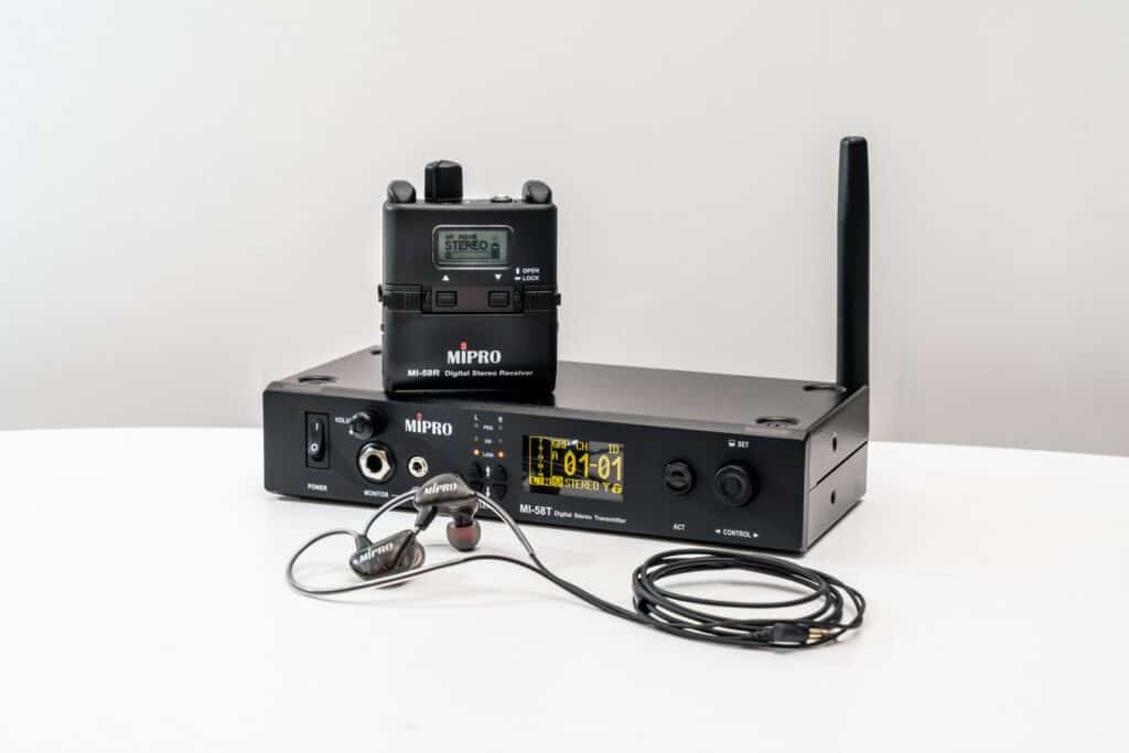 Dopełnieniem zestawu, szczególnie pod względem realizacji konferencji i słowa mówionego, jest nadajnik typu bodypack wraz z mikrofonem nagłownym. W dobie rozwoju spotkań online i konferencji hybrydowych stało się oczywiste, że również zapotrzebowanie na dyskretne rozwiązania mikrofonowe będzie się zwiększać. Propozycja Mipro w tym względzie oddaje do dyspozycji niewielki bodyback i mikrofon zakładany na głowę, bez potrzeby używania taśmy o cielistym kolorze. Cały system montuje się bardzo wygodnie, a sam mikrofon dobrze trzyma się na głowie, pozwalając na dokonywanie szybkich zmian i sprawnych przekładek między głowami. Prócz mikrofonu nagłownego, można do niego również podłączyć mikrofon typu lavalier, który według potrzeb jest mniej widoczny niż mikrofon nagłowny.