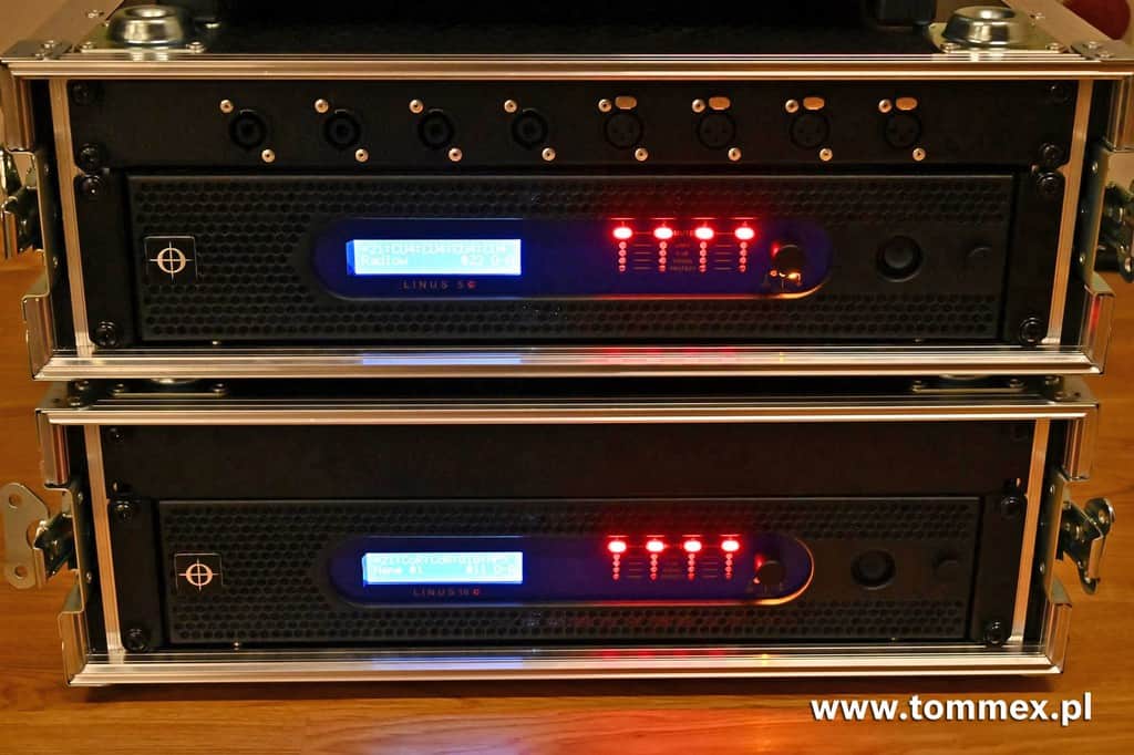 Powyższy system zasilają dwa wzmacniacze mocy: LINUS10-C, odpowiedzialny za FOH oraz LINUS5-C, który napędza zestaw monitorów podłogowych. Na sali zainstalowano również sześć zespołów głośnikowych RCF MQ60H, które są zasilane z niezależnego wzmacniacza RCF AM 1125. Ten dodatkowy zestaw kolumn służy do odtwarzania muzyki w tle podczas przerw w trakcie koncertu lub innego wydarzenia wykorzystującego zestaw FOH.