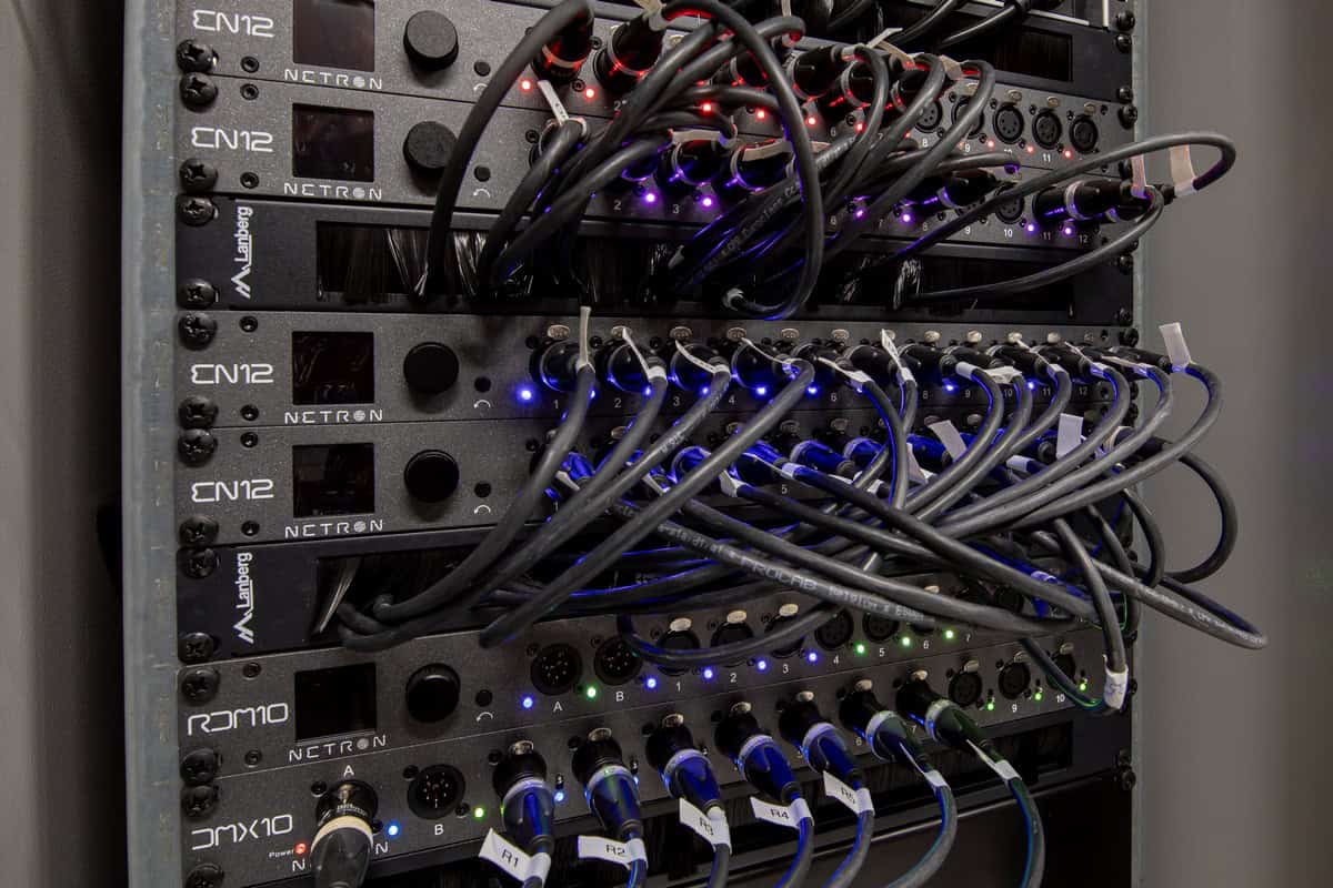 Sterowanie oświetleniem Dużej Sceny odbywa się z poziomu konsoli ChamSys MQ250M STADIUM, wyposażonej w dodatkowy dotykowy monitor i współpracującej z systemem trackingu. W pozostałych częściach budynku realizatorzy mają do dyspozycji cztery konsolety – dwa modele MQ70 i dwa MQ50. Mobilność systemu oraz możliwość tworzenia backupu są zapewnione dzięki jednolitemu oprogramowaniu MagicQ wykorzystywanemu we wszystkich urządzeniach. Dystrybucja sygnału odbywa się przy współpracy sterowników z niezawodnymi konwerterami NETRON. W rackach sterowania poszczególnych scen zamontowano 6 urządzeń Obsidian EN12, 1 Obsidian RDM10 oraz 4 splittery Obsidian DMX10-5, zaś lokalną konwersję DMX/ETH realizuje 20 mobilnych bramek Obsidian EN4/EP4. Transmisja sygnału, mająca na celu zwiększenie stabilności przy rozproszonej sieci, opiera się na protokole sACN stosowanym równolegle z DMX, co czyni system elastycznym i skalowalnym. W sytuacjach wymagających bezprzewodowej transmisji sygnału DMX, technicy mogą korzystać z 10 wielokanałowych zestawów transmiterów i odbiorników CITY THEATRICAL Multiverse SHoW Baby, a dwa zestawy testerów DMX – CITY THEATRICAL DMX CAT – umożliwiają weryfikację komunikacji oraz podręczne sterowanie reflektorami.