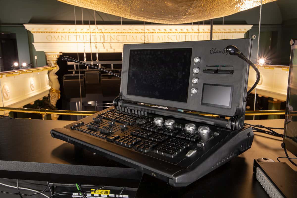 Sterowanie oświetleniem Dużej Sceny odbywa się z poziomu konsoli ChamSys MQ250M STADIUM.