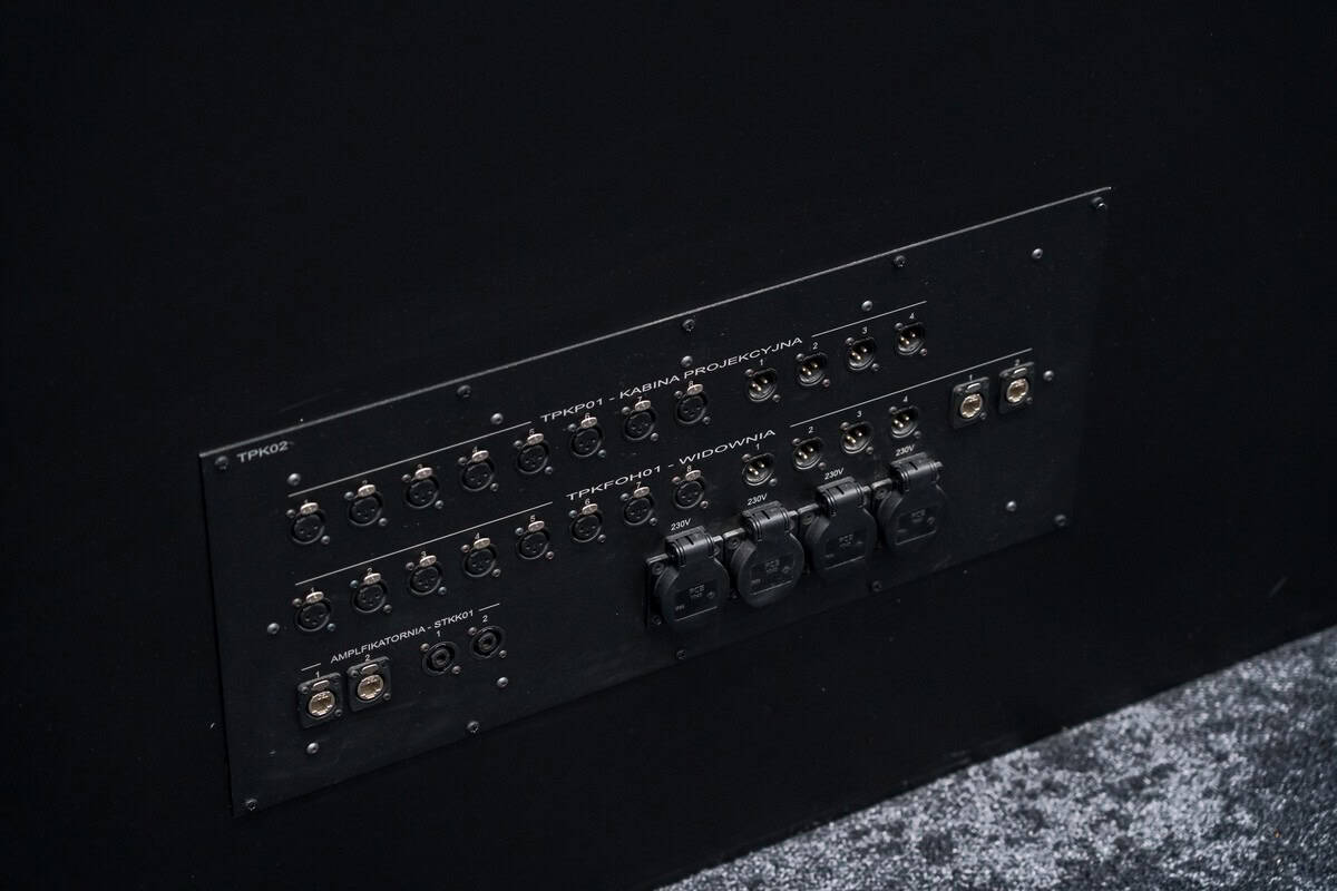 System odsłuchowy na scenie to pięć monitorów podłogowych d&b audiotechnik MAX2, subwoofer B4-Sub (można go wykorzystać np. jako drumfill dla bębniarza) oraz cztery kolumny 10S, które mogą np. pełnić rolę sidefilli. System monitorowy jest zasilany przy pomocy dwóch wzmacniaczy mocy d&b audiotechnik 40D i również został wyposażony w interfejs Dante DS10, umożliwiający łatwą wymianę sygnałów w oparciu o ten protokół. Obiekt może pochwalić się również rozbudowanym i zaawansowanym systemem miksującym. Bazuje on na urządzeniach Allen&Heath – sterowniku S5000 pracującym na stanowisku FOH oraz C2500 na pozycji MON, stageracku DM48 oraz DX168. Jednak, dzięki temu, że cała instalacja została przemyślana, zaprojektowana i przygotowana w odpowiedni sposób, nawet w sytuacji, gdyby zespół chciał przyjechać z własną konsoletą, jej podłączenie do systemu d&b audiotechnik i wymiana sygnałów ze sceną nie będzie stanowiła żadnego problemu. Oczywiście w ramach całego systemu nagłośnieniowego nie mogło zabraknąć również mikrofonów – zarówno tych przewodowych jak i pozbawionych kabla. Sala widowiskowa została wyposażona w bezprzewodowy system mikrofonowy ULX-D4QE z nadajnikami ULXD1, ULXD2 z główkami SM58 i Beta58, a jeśli chodzi o przewodowe – do dyspozycji są mikrofony producentów Shure, Sennheiser, Audix i Audio-Technica.
