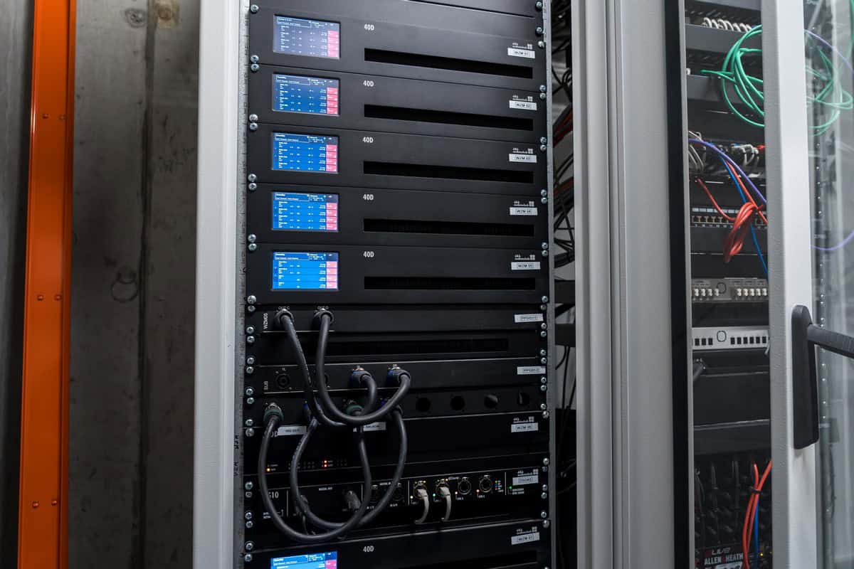 Cały system jest zasilany przy pomocy wzmacniaczy d&b audiotechnik 40D oraz 10D, natomiast możliwość odbierania sygnałów z sieci audio – przy wykorzystaniu protokołu Dante – zapewnia interfejs DS10.