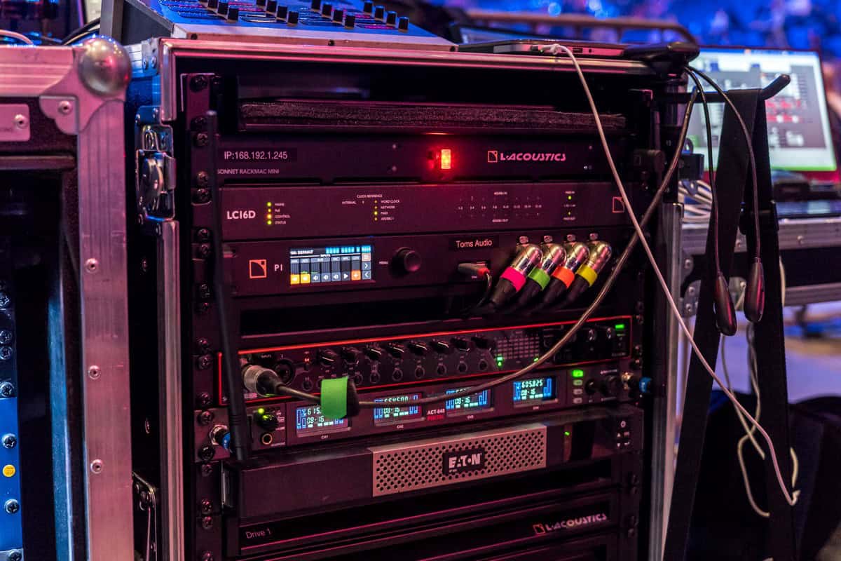 Scena została podzielona na piętnaście stref i dokonano optymalizacji wyrównania czasowego każdego z frontfilli, każdego grona bocznego i gron głównych. Miało to przede wszystkim na celu zapewnienie publiczności odpowiedniej głębi i przestrzeni dźwięku. Platformą, która w znakomity sposób ułatwia realizację całego tego zadania jest Procesor L-Acoustics P1. (fot. Ł. Kornafel)