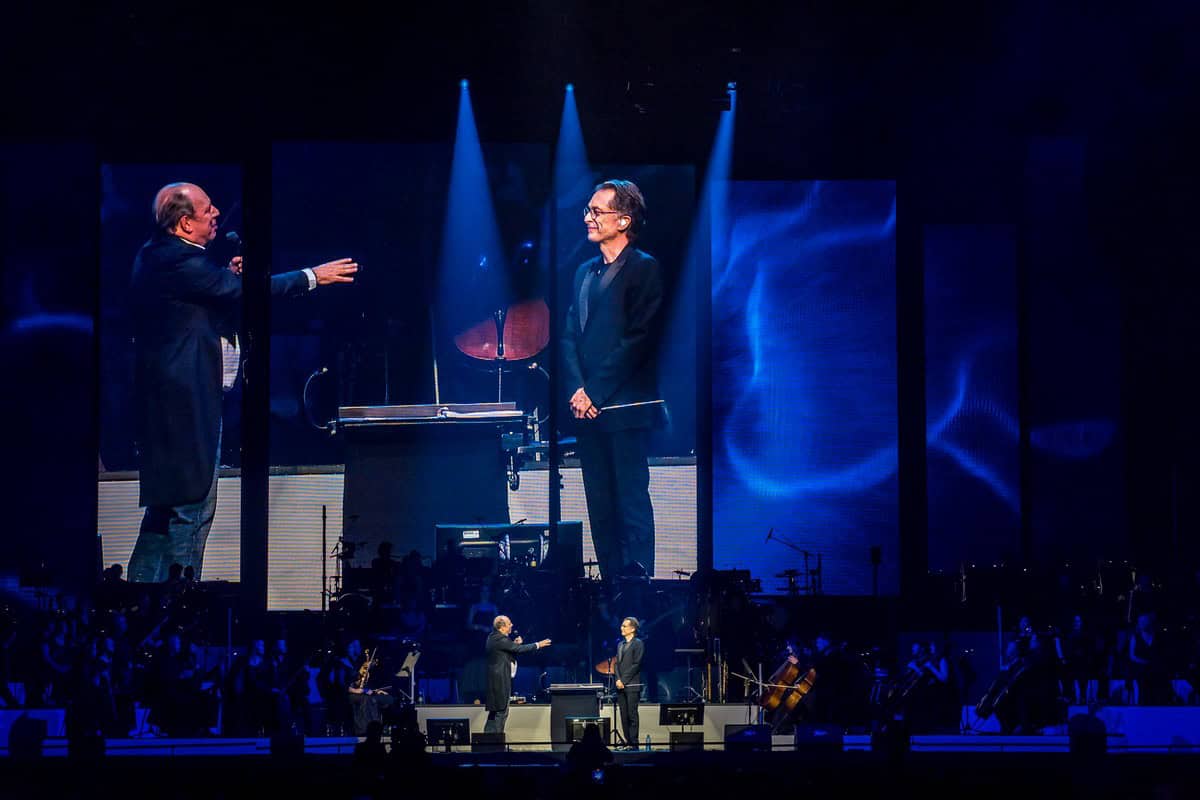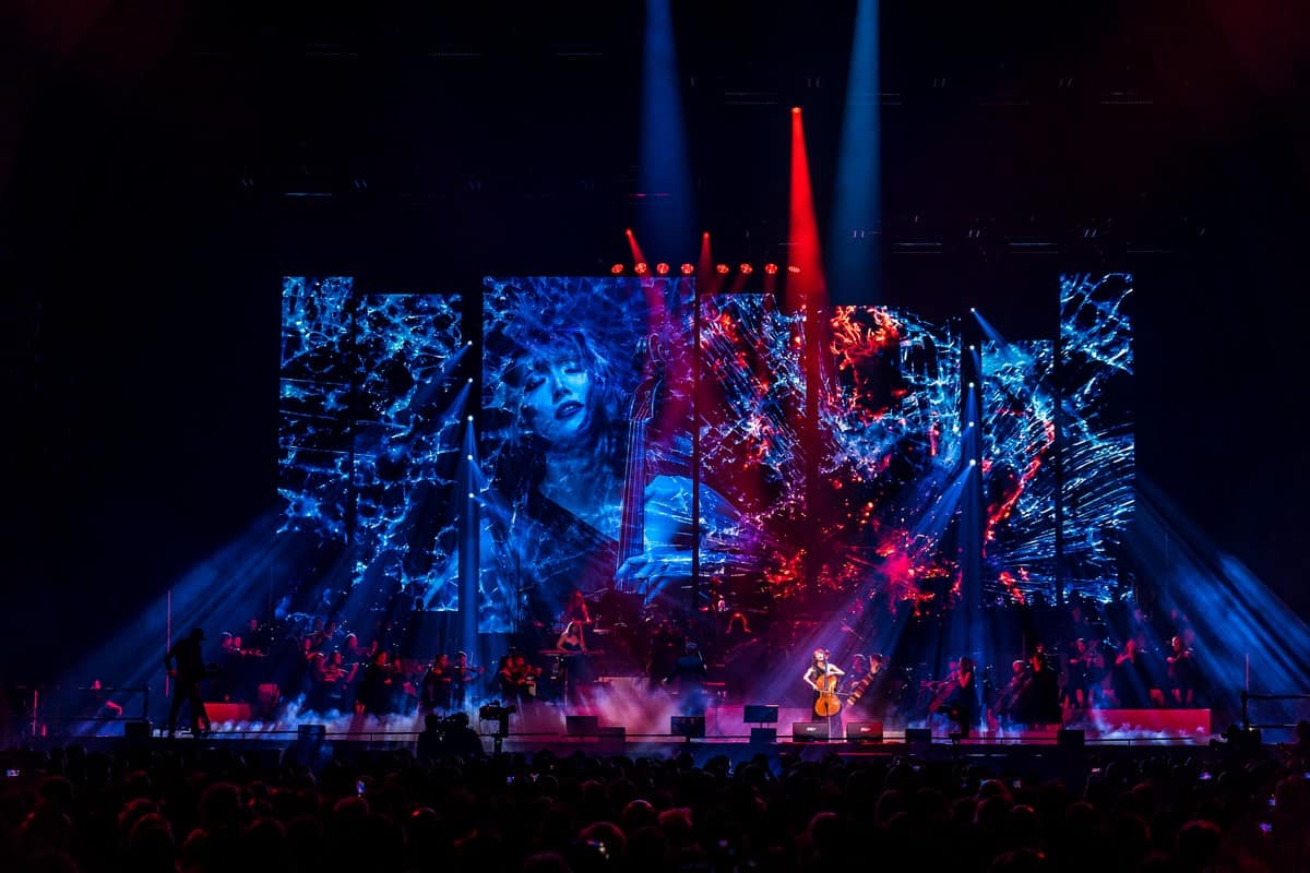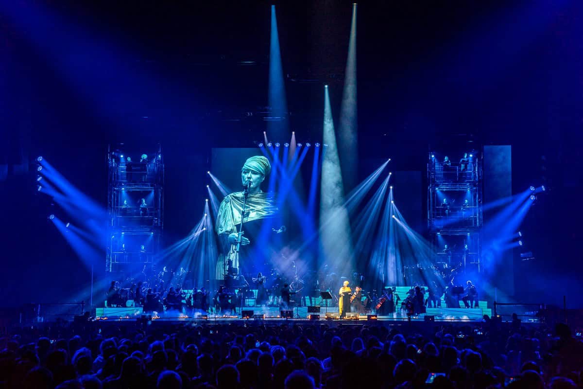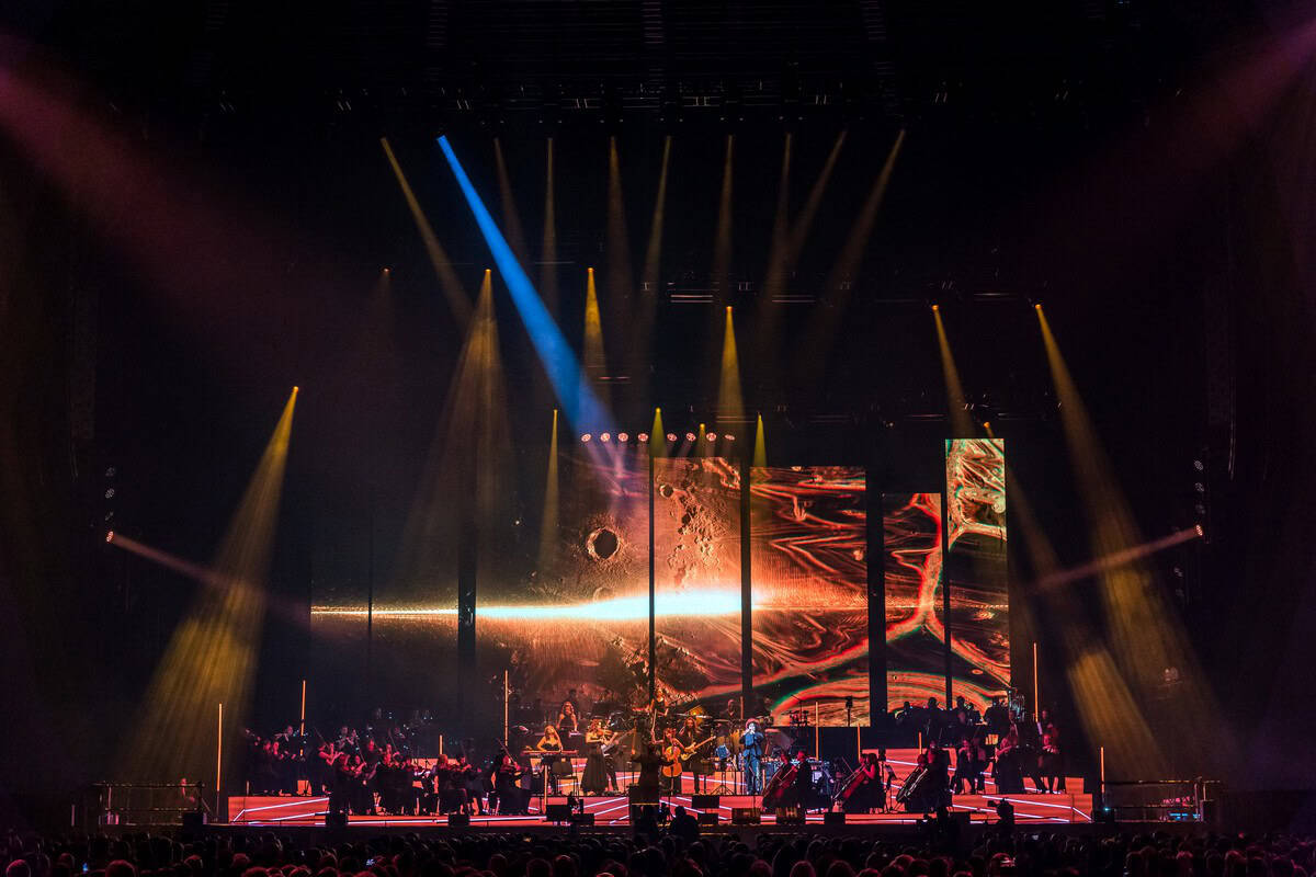 Niewątpliwą siłą całej produkcji są połączone z wizualizacjami fragmenty filmów, prezentowane na olbrzymim ekranie, znakomicie wyreżyserowane i zrealizowane światło, zainstalowane nie tylko na scenie, ale także w przestrzeni hali, nad głowami widowni, i bardzo dobrze przygotowany system nagłośnieniowy. (fot. Ł. Kornafel)