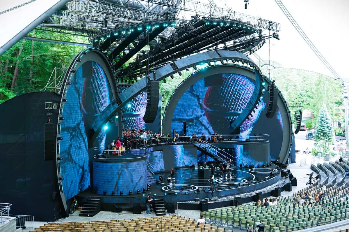 Na froncie, po obu stronach sceny, powieszono po 12 modułów d&b audiotechnik KSL8 oraz po 10 elementów systemu V, pełniących rolę outfilla.
