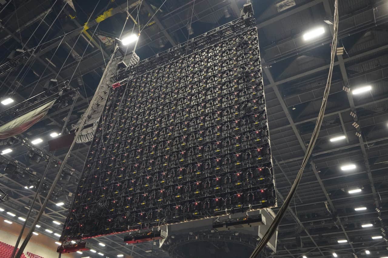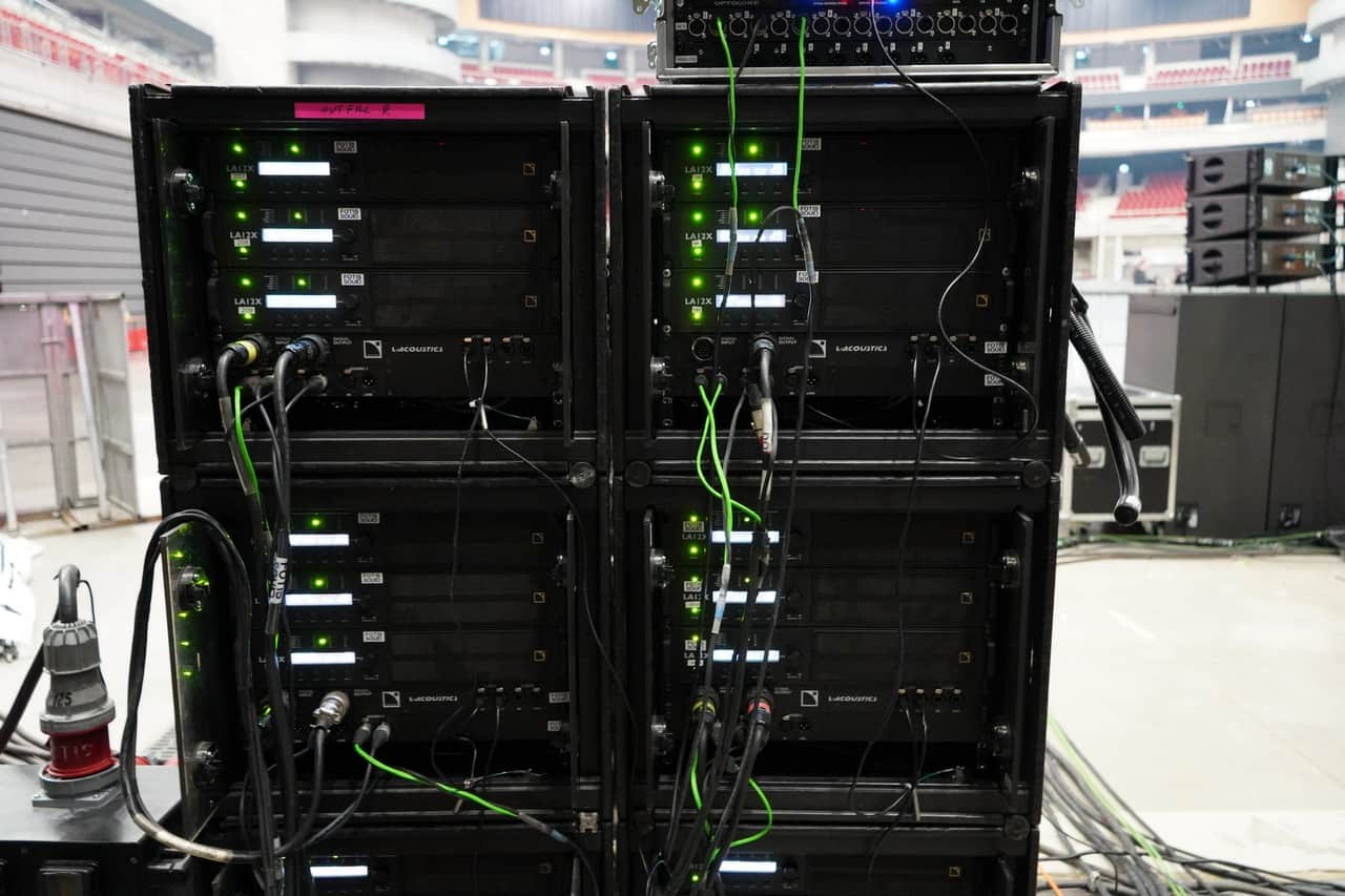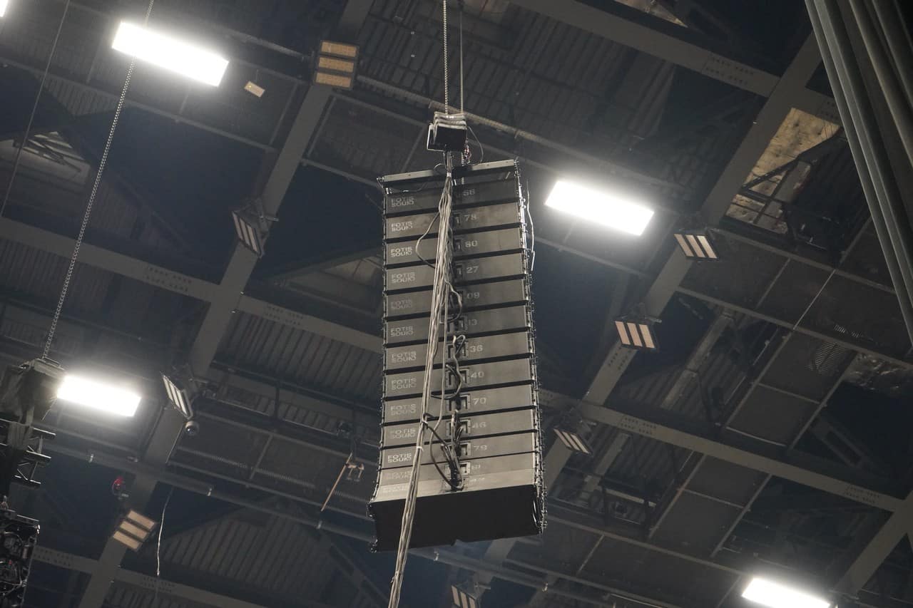 Przechodząc do szczegółów, zacznijmy od systemu nagłośnieniowego. Cała trasa została nagłośniona zestawami K1 oraz K2 marki L-Acoustics. Inżynierem systemu był Jerzy Kubiak, który zadbał o jego wzorcowe przygotowanie na każdym z koncertów. Konfiguracja zastosowana w Ergo Arenie obejmowała 28 modułów K1 i 36 modułów K2. Front-fill stanowiły doskonale sprawdzające się w tej roli moduły Kara w liczbie 8 sztuk, a za niskie częstotliwości odpowiadały suby KS28 w liczbie 16 sztuk. Projekt nagłośnienia zakładał również dodatkowy out-fill złożony z dwóch podwieszonych gron po 6 modułów Kara. Ich zadaniem było dogłośnienie najwyżej położonych miejsc z tylu hali. W pozostałych miastach konfiguracja przeważnie była podobna. Modyfikowano ją tylko w wypadkach, gdy warunki techniczne lub fizyczne na to nie pozwalały lub też nie wymagały takiego zestawu. W najmniejszych halach decydowano się na stawianie „ground suportu” i tam zazwyczaj wieszano wyłącznie system K2 oraz Kara (front-fill, out-fill i ewentualne delaye).