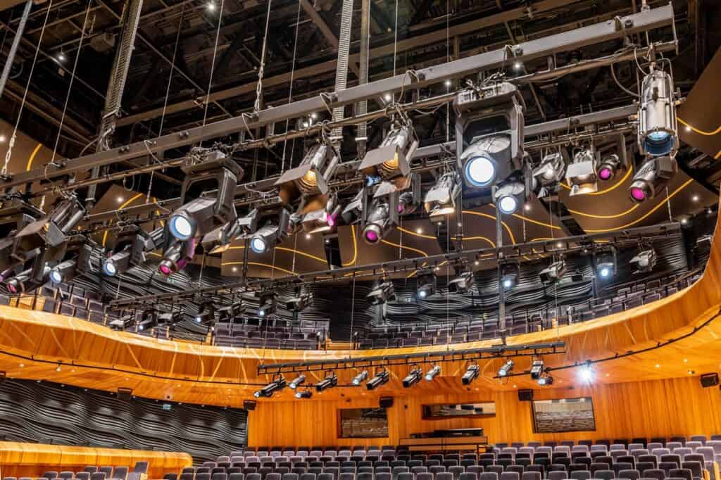 W trakcie tegorocznych targów Prolight + Sound we Frankfurcie miała miejsce premiera nowej rodziny 1500-watowych ruchomych głowic typu spot amerykańskiej firmy Vari-Lite, należącej do międzynarodowego koncernu Philips Entertainment. Trzy urządzenia typu spot dostarczane są wraz z żarówką wyładowczą o mocy 1500 W (krótki łuk, 6000 K, CRI 90). Pierwsze z nich, model 3015, wyposażony jest w trzynastoelementowy układ optyczny, umożliwiający płynną regulację zoomu w zakresie od 10° do 60° (6:1). Urządzenie ma również wbudowany płynny iris, system strobo oparty na dwóch ostrzach oraz dimmer wykonany w technologii tarczy szklanej, co pozwala na bardzo precyzyjne operowanie. System uzyskiwania barw oparto na trzyelementowym module CYM wzbogaconym o tarczę sześciu wymiennych kolorów bezpośrednich i płynną regulację temperatury barwowej CTO. Trzy tarcze efektów i gobo – wymiennych i obrotowych, dwie z pięcioma slotami i jedną z czterema, pozwalają na uzyskiwanie niezwykłych efektów graficznych. Za ruch w zakresie pan (540°) i tilt (270°) odpowiedzialne są silniki trójfazowe pozwalające uzyskać wyjątkowo płynny i precyzyjny ruch z rozdzielczością 0,3°. Kolejna głowa, VL3015LT, dedykowana jest do efektów na największych koncertach. Układ optyczny (10 : 1) umożliwia regulację zoomu w zakresie od 5° do 50°. W porównaniu z modelem 3015 urządzenie wzbogacono o dwie pięciopozycyjne tarcze kolorów i pięciokrotny pryzmat obrotowy oraz przesłonę frost. Najwyżej pozycjonowana w linii ruchoma głowa, VL 3515, wyposażona jest w system czterech indywidualnie pozycjonowanych i obrotowych w zespole ostrzy kadrujących. www.vari-lite.com www.teatr.com.pl