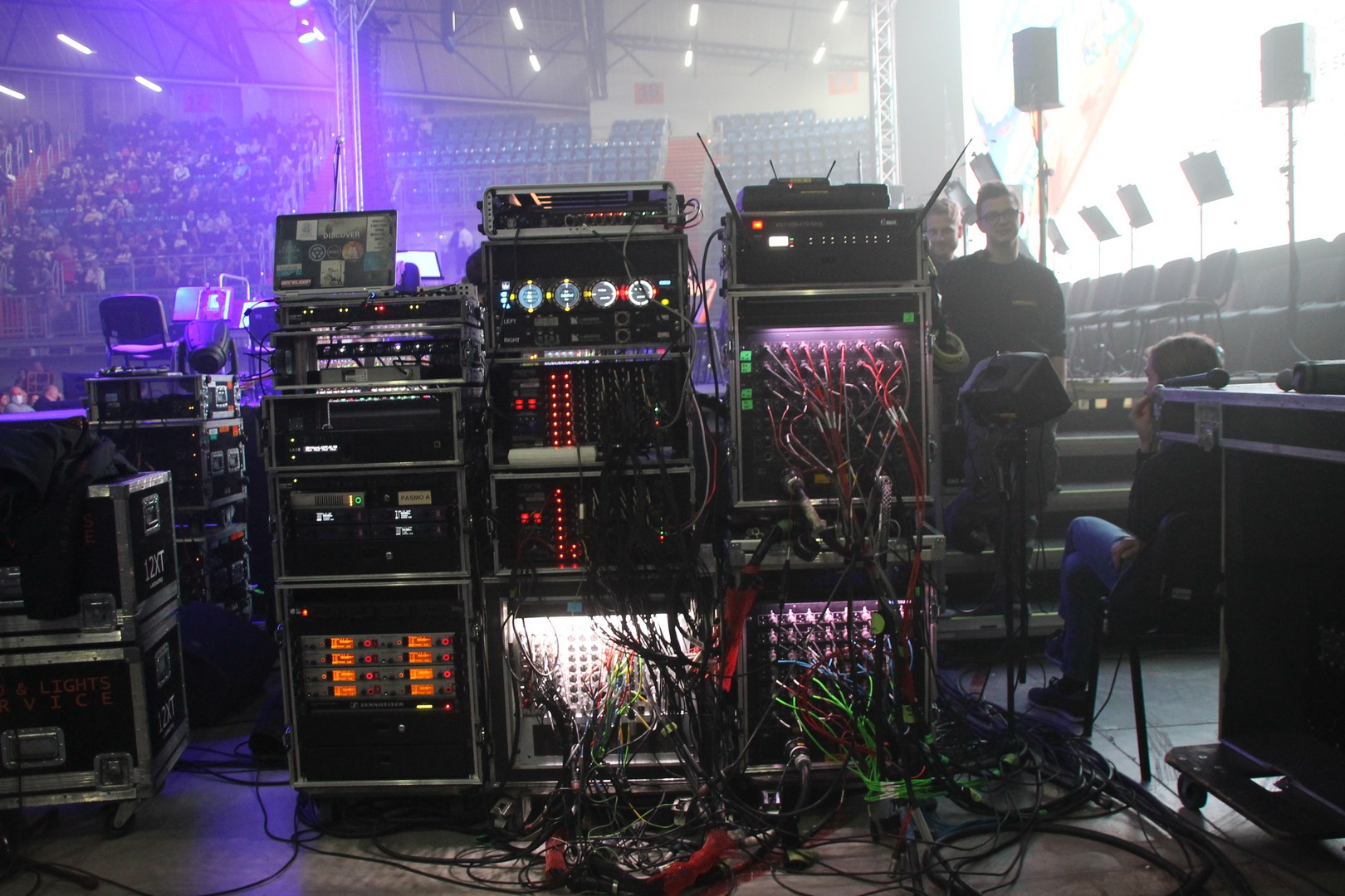 Biorąc pod uwagę wszystkie mikrofony, powroty efektów, loopy, klik dla dyrygenta i orkiestry, konferansjerów, całą komunikację wewnętrzną, która też jest realizowana przez mikser; łącznie na desce jest zajętych około 120 kanałów.