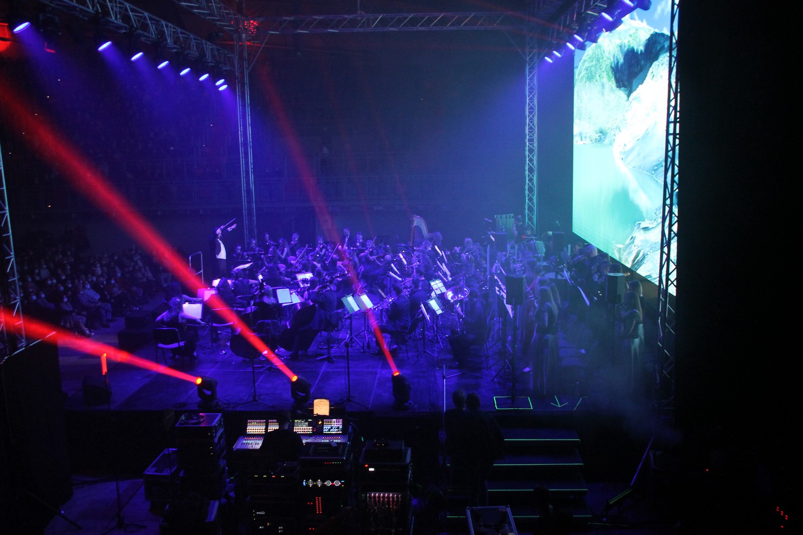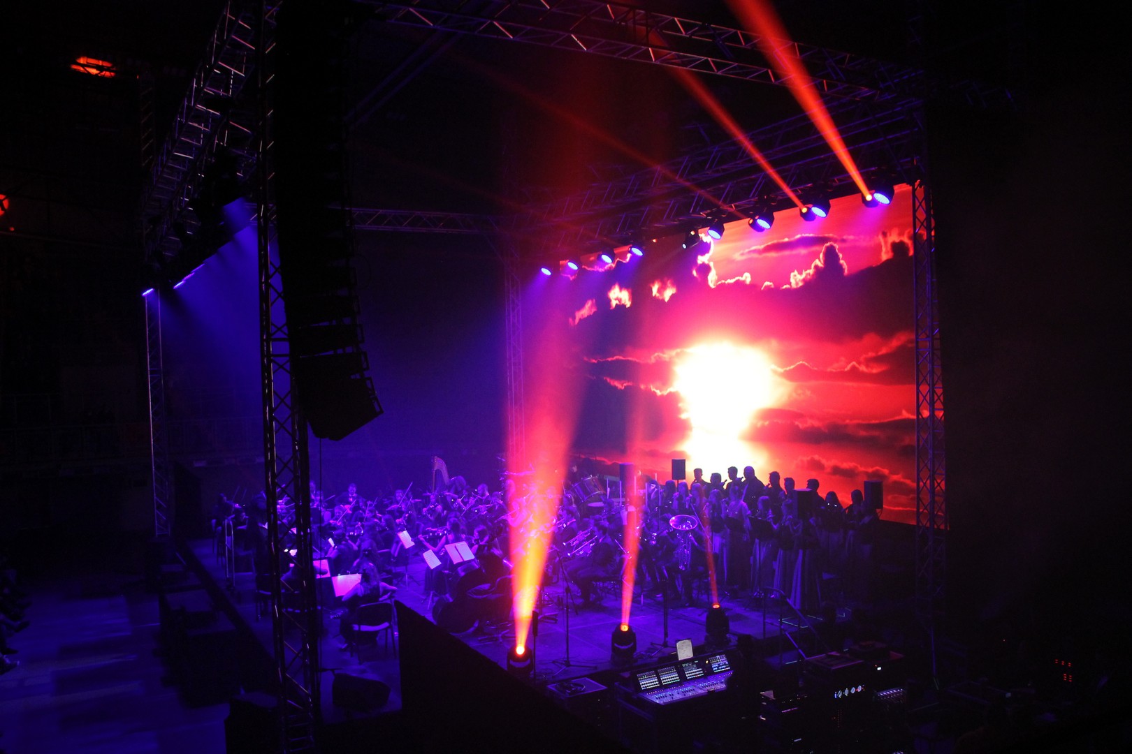 Powiedzmy choć parę zdań o przedsięwzięciu pod nazwą „Visual Concert Koncert Muzyki Filmowej i Epickiej z projekcją najpiękniejszych miejsc świata”, którego ideą jest połączenie muzyki granej przez orkiestrę z projekcją na dużym, LED-owym ekranie (co gwarantuje obraz najwyższej jakości), znajdującym się z tyłu sceny. Trasa rozpoczęta w 2019 roku została, niestety, zastopowana przez pandemię, ale obecnie powraca i znów przyciąga liczną publiczność. W repertuarze nie brak filmowych hitów z takich dzieł jak Gladiator, Avatar, Piraci z Karaibów, James Bond, Marzyciel, Transformers czy Władca Pierścieni, granych w aranżacji na orkiestrę symfoniczną, ale z wykorzystaniem wzbogacających jej brzmienie sampli czy loopów. Od razu uprzedzę, że cała orkiestra jest nagłośniona, co jest chyba najwyższym poziomem sztuki realizatorskiej. Warto tu wspomnieć o składzie. CoOperate Orchestra (blisko 80 osób) pod batutą Adama Domurata, której towarzyszy Chór Akademicki Uniwersytetu Adama Mickiewicza (pod kierownictwem Beaty Bielskiej) gwarantują wysoki poziom wykonawczy. A w sferze wizualnej publiczność może podziwiać różne, piękne zakątki naszej planety – to prawdziwa muzyczna podróż. Słowem, jest to spektakl łączący tradycję, klasyczne instrumenty i absolutnie najnowszą technologię. Zresztą pierwszą rzeczą, która rzuciła mi się w oczy po przyjechaniu na miejsce było sporo samochodów z logo Sound & Lights Service, w tym także ogromny truck, którym przewożona jest lwia część sprzętu. Sprzętu, którego jest naprawdę sporo.