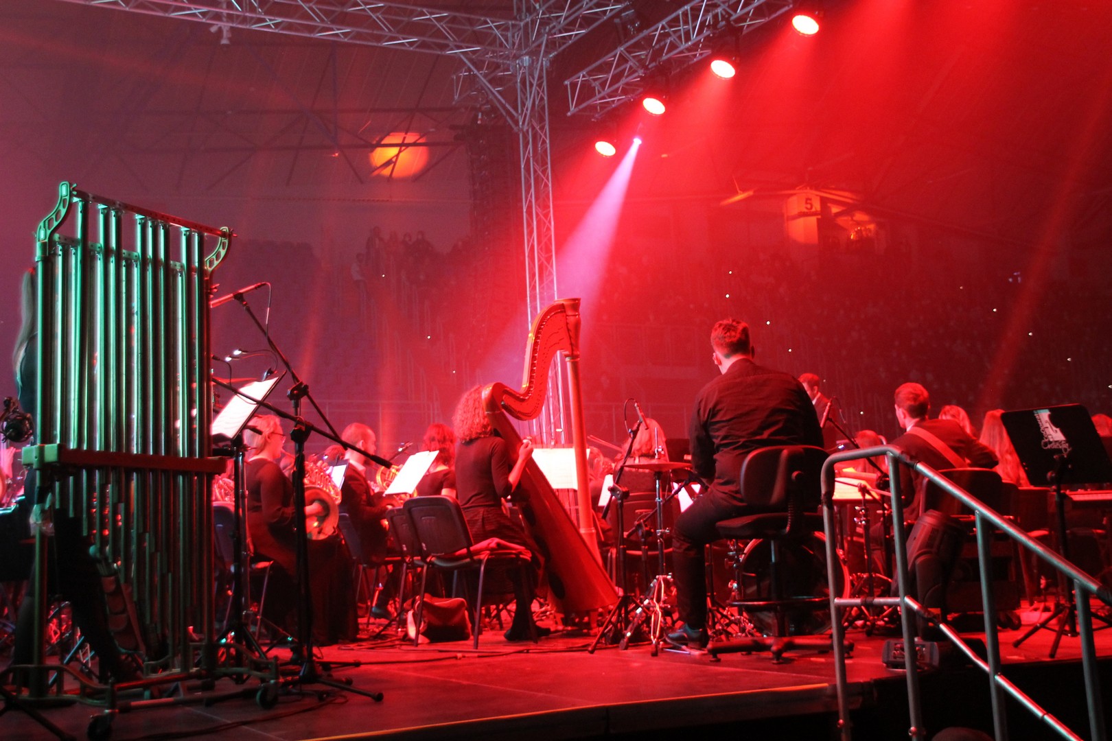 Pojawiłem się już po próbie, gdy do koncertu zostało sporo czasu, zatem mogłem spokojnie obejrzeć stanowisko realizatora, scenę i całą salę, gotową na przyjęcie publiczności. Na początek zapytałem Grzegorza Wełnę o samą ideę trasy i widowiska: – Visual Concert, produkowany przez firmę Visual Production, łączy w sobie koncert orkiestry symfonicznej grającej muzykę filmową, epicką, jak również muzykę z gier komputerowych, z wizualizacjami. Zamysł był taki, żeby obraz, który się wyświetla na tym dużym ekranie, ściśle korespondował z grą orkiestry, żeby był dokładnie zmontowany pod partyturę, pod konkretny aranż, dając publiczności spójne doznania. Trasa zaczęła się już ponad dwa lata temu, została przerwana przez pandemię, teraz wracamy. Dzisiaj gramy w Gdyni, wcześniej graliśmy w Warszawie na Torwarze, w Gliwicach na Arenie, następnie gramy w Netto Arenie w Szczecinie i potem mamy jeszcze 12 miast do odwiedzenia. Ta sala, w której dziś gramy, jest jedną z mniejszych, zdarzają się te koncerty na 5 -6 tysięcy osób. I całkiem nieźle się sprzedają, więc chyba jest to fajna produkcja.
