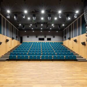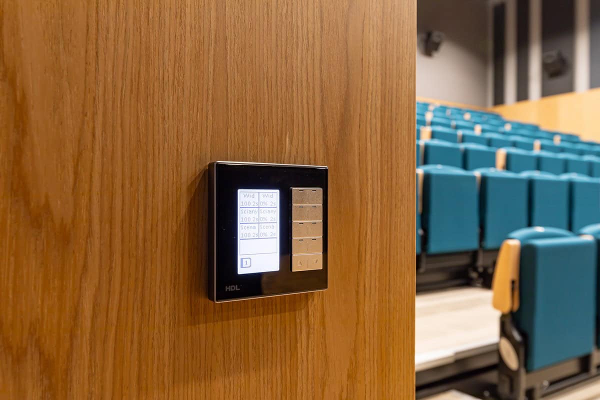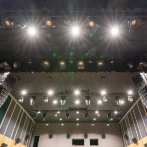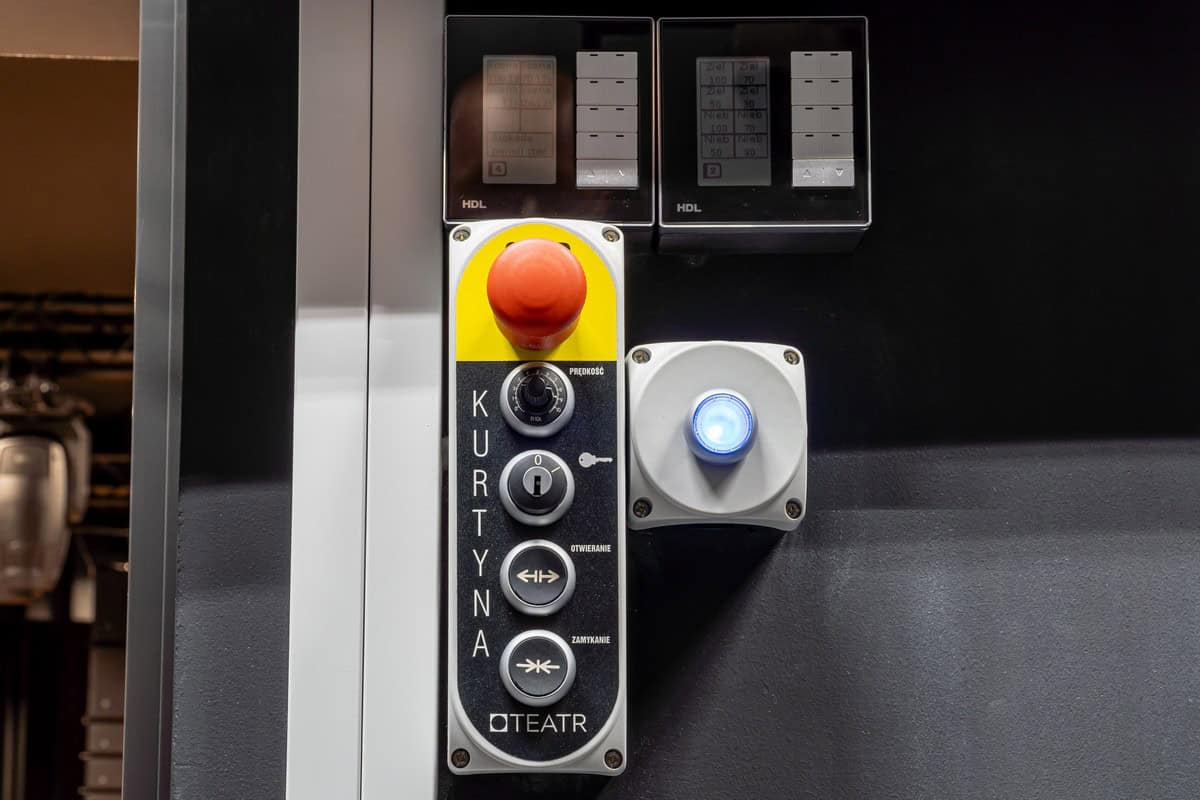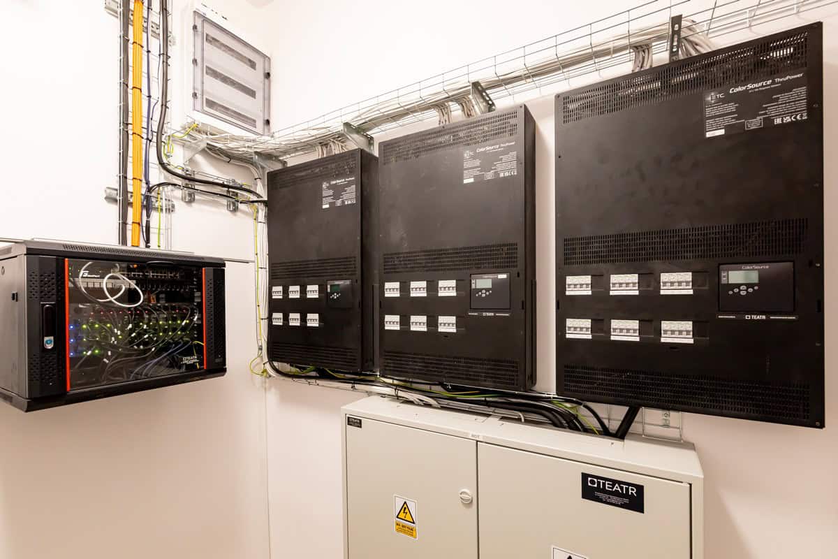 Oświetlenie również musiało spełniać wysokie wymagania – zarówno pod kątem funkcjonalności, uniwersalności, jak i energooszczędności. Należy mieć na uwadze, że służyć będzie nie tylko podczas występów artystycznych, ale także imprez innego rodzaju, jak konferencje czy spotkania. Dlatego też zastosowano urządzenia standardowe, wymagające użycia regulatorów napięcia – oczywiście nowoczesne rozwiązania oparte na technologii LED. Tutaj P.S. TEATR dostarczył regulatory napięcia renomowanej amerykańskiej firmy ETC CS ThruPower.