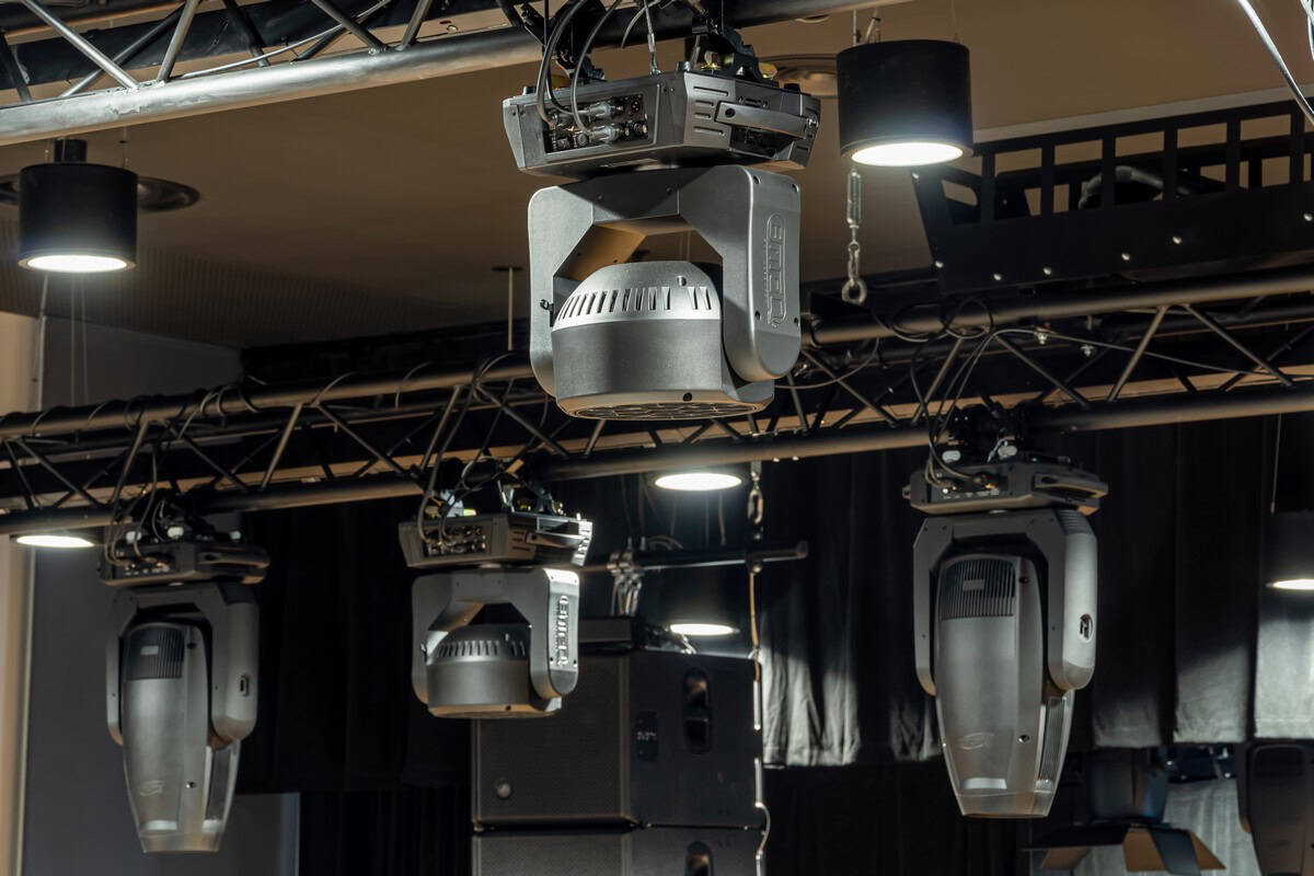 Reflektory sceniczne to produkty firmy Briteq – na przykład BT-PROFILE 250 LED ENGINE, BT-MAGIFLASH RGB – oraz DTS, jak SCENA 1000PC czy Profilo LED 200FC. Z kolei ruchome głowy to BLIZZARD WASH, BT SHARK, Briteq Cirrus, a także produkty firmy CLF – w tym ruchome głowy BEAM 6 i naświetlacze LED CLF LEDWASH XL. Są także reflektory Elation: FUZE PAR Z175, FUZE PROFILE, KL Fresnel 6 WW i SFX. Nie mogło zabraknąć wytwornicy mgły dla podkreślenia efektów świetlnych – w tym przypadku jest to HES FQ100. System oświetlenia jest sterowany z poziomu konsolety firmy ChamSys, sprzężonej z bramką ArtNet / DMX OBSIDIAN EN12.