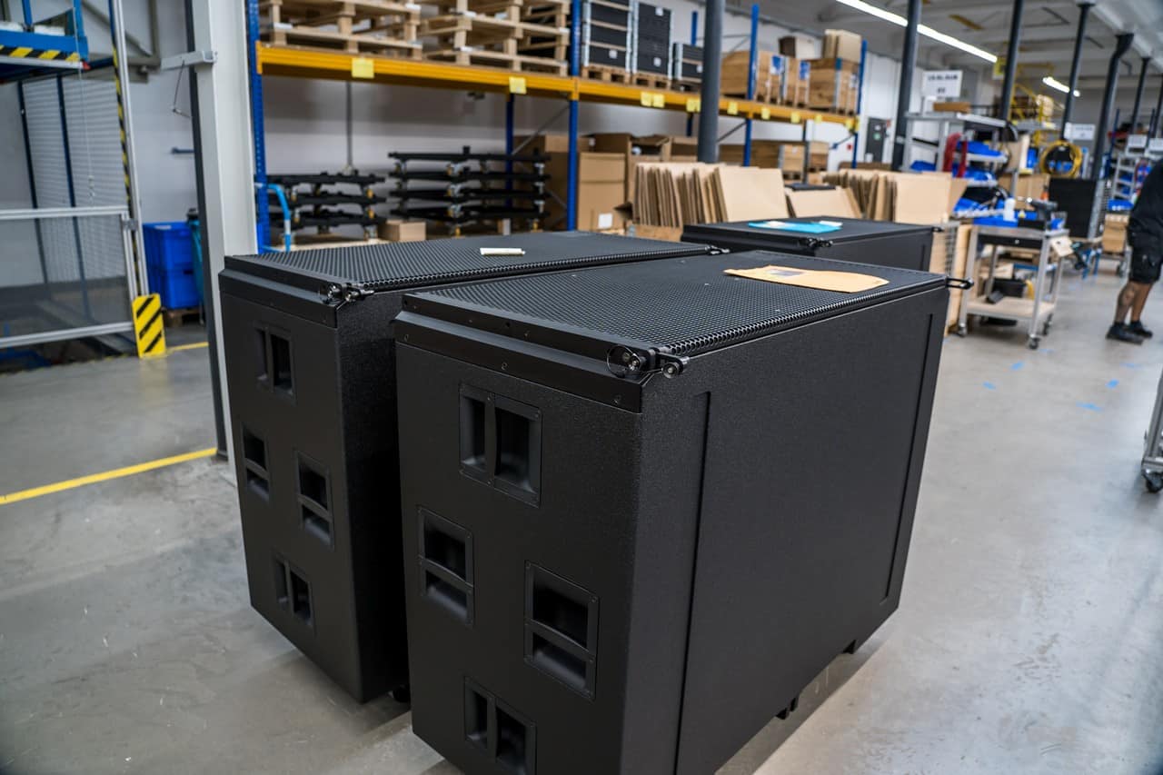 W fabryce produkowane jest całe portfolio kolumn od najmniejszych, instalacyjnych po największe systemy koncertowe z serii GSL i KSL, grające na scenach całego świata.