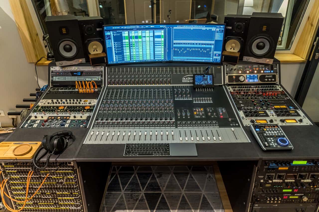 Poza 16 transparentnymi preampami z ASP4816 mam 20 kanałów przedwzmacniaczy różnych uznanych produentów, jak Neve, SSL, Focusrite czy Midas, co umożliwia nadanie różnych kolorów nagrywanym instrumentom. Konsola i preampy mogą być wykorzystywane do nagrań, poprzez krosowanie ich wyjść do interfejsu Antelope Orion 32+. Mam do niego podłączone dodatkowe przetworniki (łącznie 50 wejść), więc w tym momencie można przypiąć 36 mikrofonów. Do nagrywania setek w studiu tego formatu jest to liczba w zupełności wystarczająca. Konsoleta Audient do miksu również sprawdza się doskonale, ponieważ wszystkie wejścia ma podwójne (in-line), co oznacza, że ma 32 inputy na kanałach, oraz inne, na przykład 4 stereofoniczne powroty efektów. Liczba 48 w nazwie odnosi się do możliwości sumowania 48 sygnałów. W krosownicy mamy odwzorowane wszystkie złącza konsolety, przetworników i outboardu, więc bez problemu mogę, na przykład, insertować procesory dynamiczne. Co warto podkreślić, ta konsoleta ma również sterowanie monitorami odsłuchowymi oraz kompletny system do talkbacku. Do tej pory miałem do tego osobne urządzenia, a obecnie wreszcie jest to integralna część konsoli. Mimo swojej w pełni analogowej konstrukcji ASP4816 jest dopasowana do współczesnych wymagań studia hybrydowego.