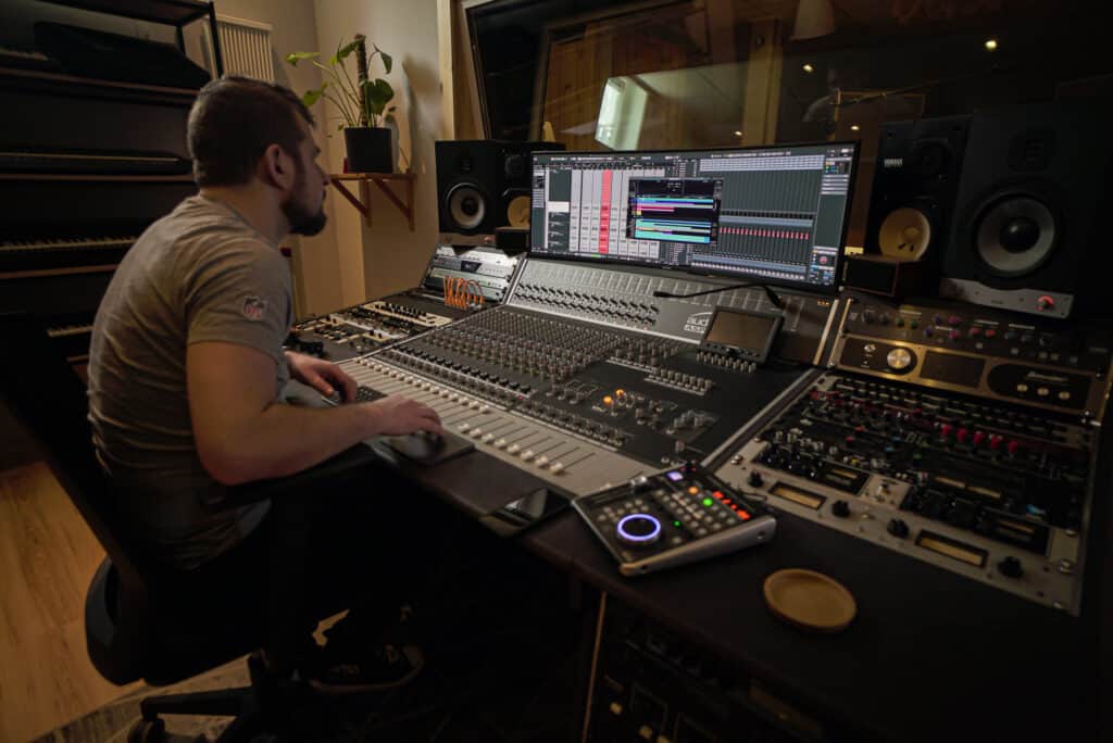 To podejście wynika trochę z doświadczenia, a trochę z nabytej odwagi. Jak zaczynałem, starałem się unikać jakiegokolwiek wpływu na to, co nagrywam aż do momentu miksu. Z czasem sam, ale też pod wpływem rozmów czy warsztatów z doświadczonymi realizatorami zrozumiałem, że to jest największa frajda móc w taki sposób zaingerować w dźwięk i ponieść konsekwencje swojej świadomej decyzji. Nie polecałbym takich metod na start dla początkujących, którzy mogą popełnić jeszcze sporo nieodwracalnych błędów na tym etapie (i na przykład zrazić do siebie klientów). Powoli, stopniowo, „po godzinach”, w ramach nauki. Ja pracuję już wiele lat, zebrałem sporo doświadczenia i obecnie np. gdy nagrywam wokale, to nie zapisuję już sygnału bezpośrednio po preampie. Zawsze mam na zapięty kompresor, a bardzo często również equalizer. Jeśli wiem do czego dążę, to gdy używam tych narzędzi od razu – praca jest szybsza i bardziej satysfakcjonująca. Gdyby jednak tak podjęta decyzja okazała się nietrafiona, to wyzwaniem jest zrobić krok do przodu, skoro nie ma możliwości odwrotu.