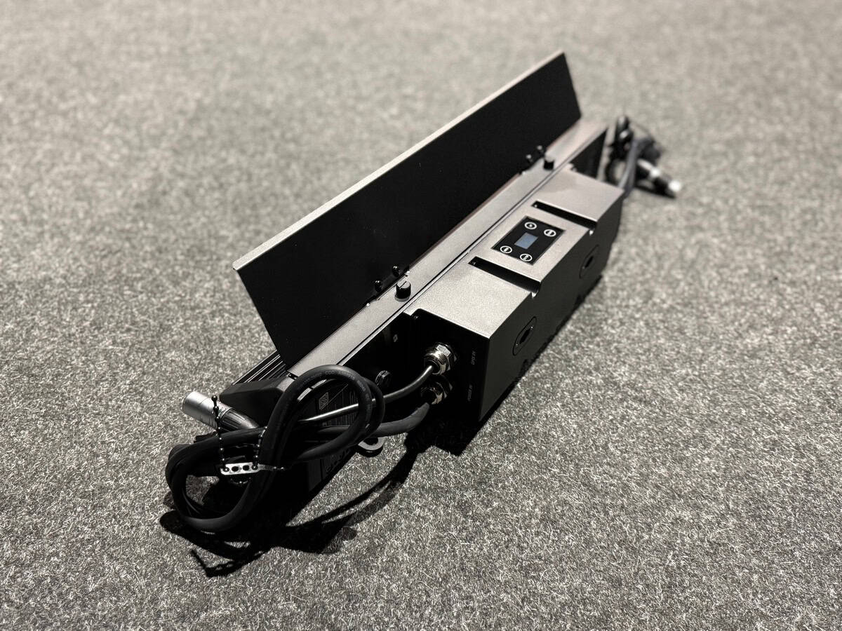 Dziś w redakcji przyszedł czas na rozpakowanie kartonu zawierającego model 80C. Zerkałem na niego już jakiś czas, ale ze względu na inne obowiązki omijałem go codziennie. Dziś wreszcie nadszedł ten moment i uniosłem karton. Po rozmiarach opakowania spodziewałem się czegoś ultralekkiego, ale natychmiast przypomniało mi się, że jest to oprawa w klasie IP65. Zatem Stager 80C waży 6 kg i ma wymiary 530 × 217 × 110 mm. Stosunkowo niewielkie i właściwie lekkie urządzenie (jak na IP65) stanęło w końcu przede mną. I tu pełne zaskoczenie. Z założenia XEOS kojarzył mi się z tańszą alternatywą rozwiązań w klasie pro, a tu… moim oczom ukazała się oprawa, do której wykonania zdaje się, że nikt nie powinien mieć zastrzeżeń. Wręcz przeciwnie! Dawno nie widziałem tak porządnej, w pełni metalowej obudowy z idealnie spasowanymi częściami. Optyka posiada dyfuzor pod szkłem osłaniającym źródła światła (tak – osłona jest szklana), co powoduje, że 80C osiąga kąt świecenia 70 stopni. Oczywiście wewnątrz znajduje się umieszczony asymetrycznie odbłyśnik, co sprawia, że ten Stager nadaje się idealnie do powierzchni scenograficznych i architektonicznych. Zamierzony efekt oświetlenia danego obiektu można osiągnąć, ustawiając to urządzenie w niewielkiej odległości. Z jednej strony oprawa posiada klapę, więc nie będzie problemu z wycięciem wiązki światła poza pożądanym obszarem. Wiem, że to detale, ale nawet mechanizm klapy działa po prostu dobrze i jej kąt otwarcia można ustawić bardzo precyzyjnie. Wszyscy, którzy mają lub mieli do czynienia z klapami – czy to w podobnych urządzeniach, czy w oprawach typu PC i Fresnelach – wiedzą, jak skrzydełka (a raczej to, jak działają) są ważne. Efekt sprężynowania, permanentnego luzowania się mechanizmów i samoczynnego opadania to coś, co sprawia, że niektórym producentom kazałbym wyprodukowane przez siebie skrzydełka ustawiać kilka godzin dziennie – to tak w ramach pokuty za sprzedaż niedopracowanych akcesoriów.